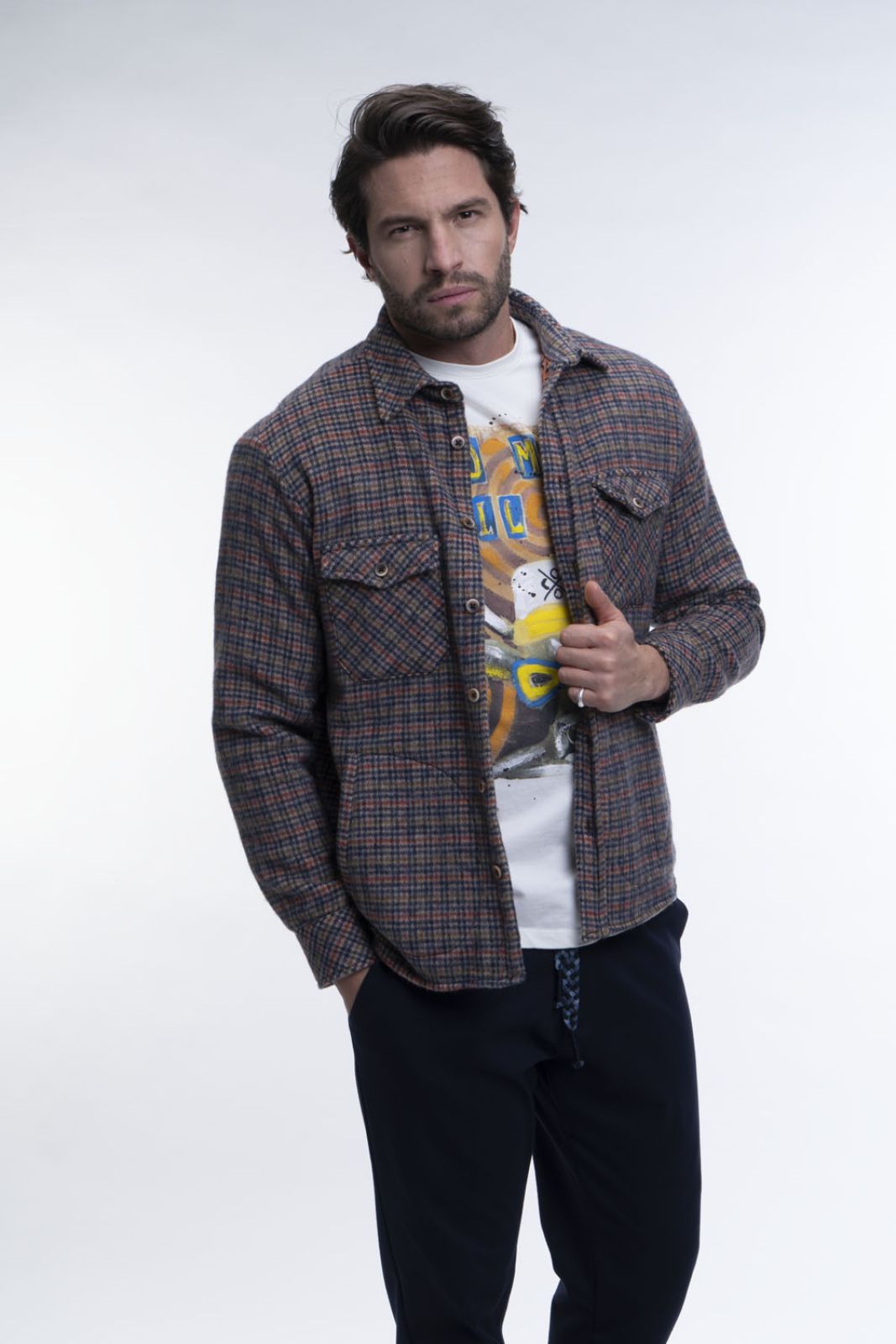 OVERSHIRT IN LANA COTTA, FODERA INTERNA STAMPATA, 100% MADE IN TUSCANY.