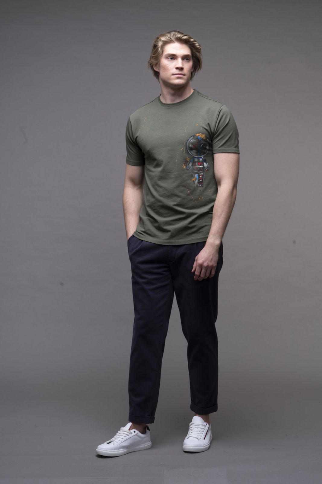 – T-Shirt 100% cotone, colore verde, stampata e dipinta a mano, moschina KOON. Personalizzazione artigianale che rende ogni capo KOON unico e inconfondibile. 100% Made in Italy.