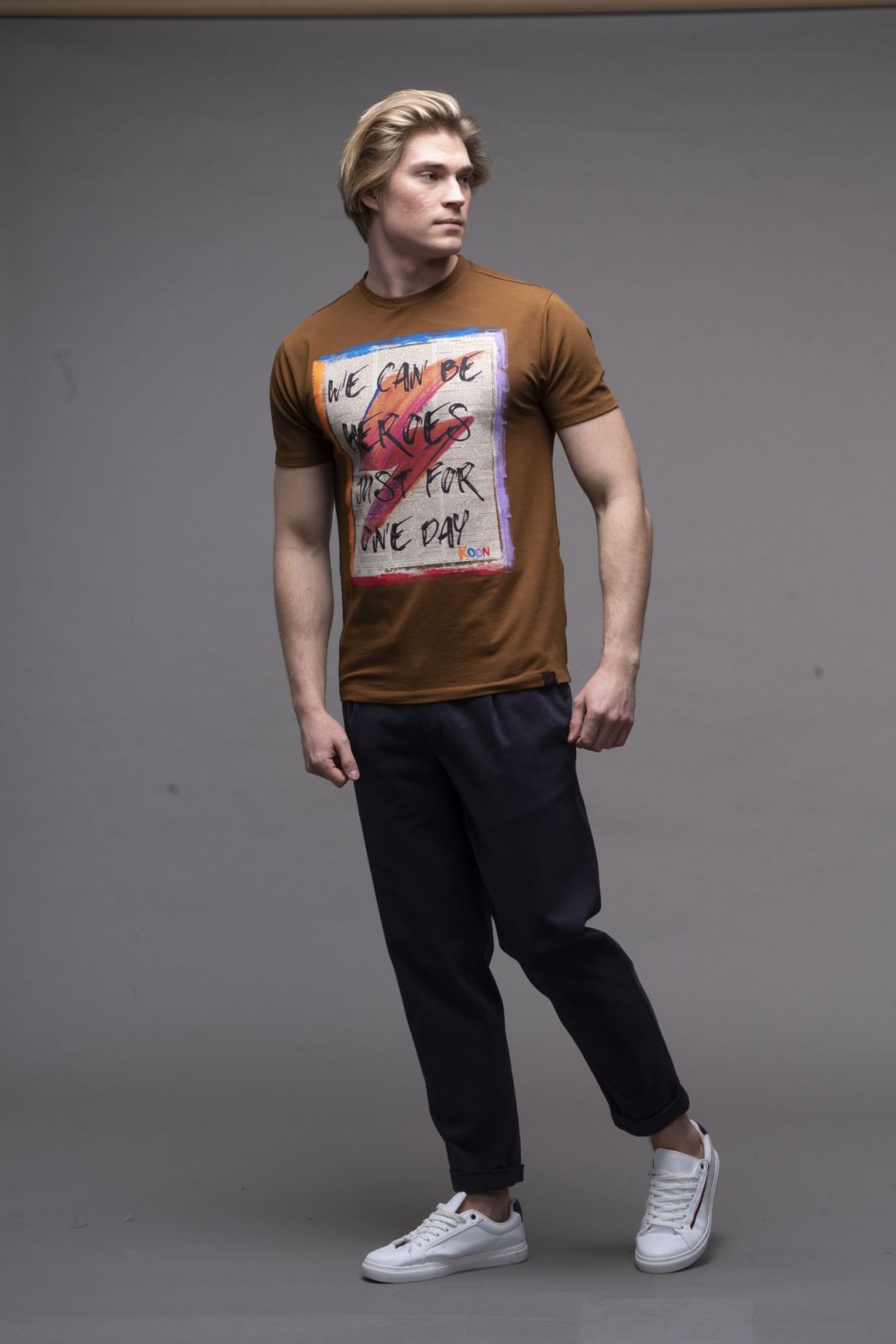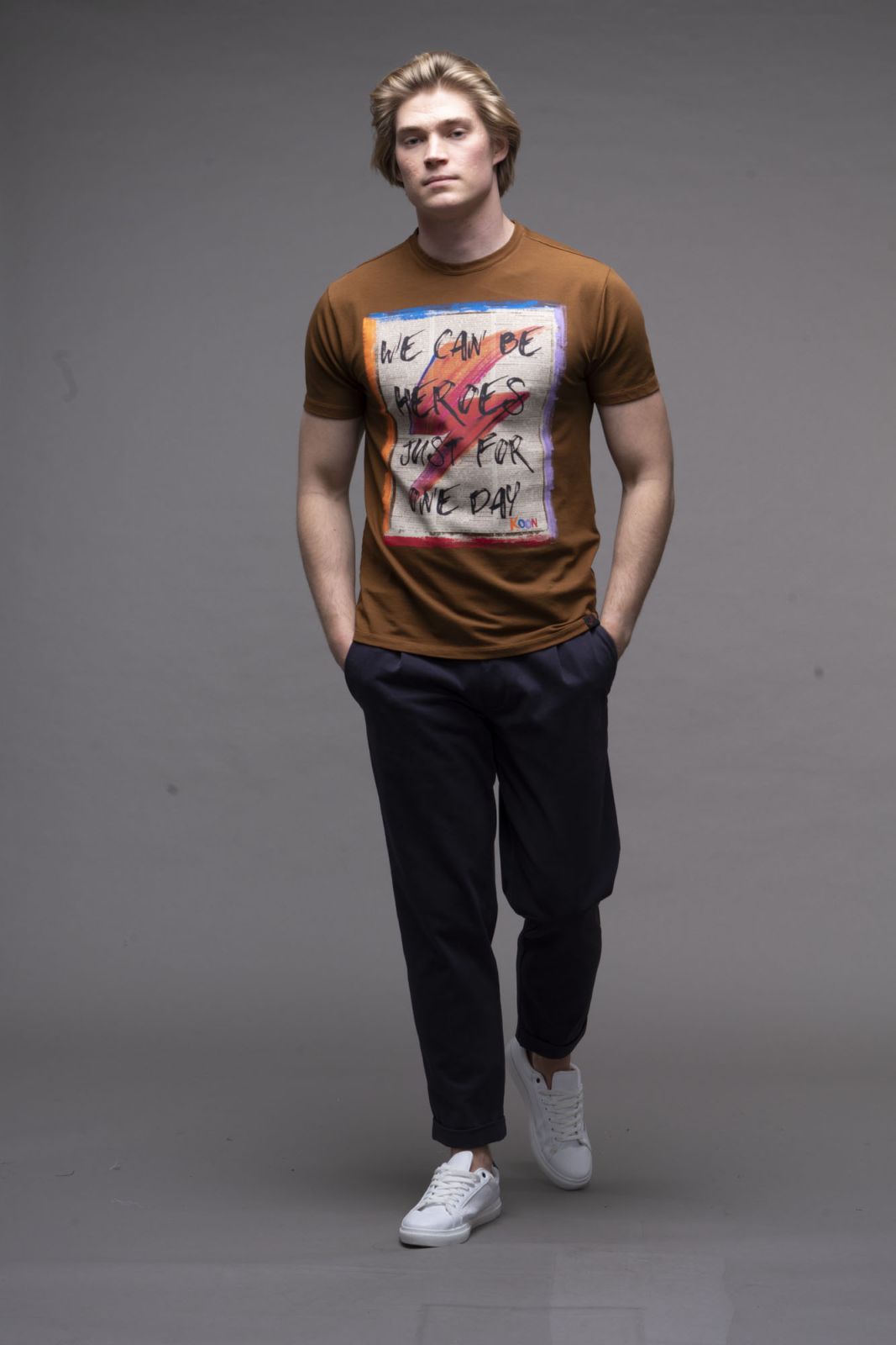 T-Shirt 100% cotone, colore coccio, stampata e dipinta a mano, moschina KOON. Personalizzazione artigianale che rende ogni capo KOON unico e inconfondibile. 100% Made in Italy.